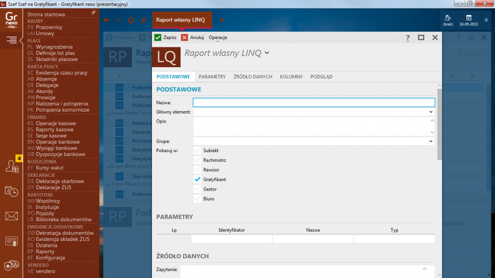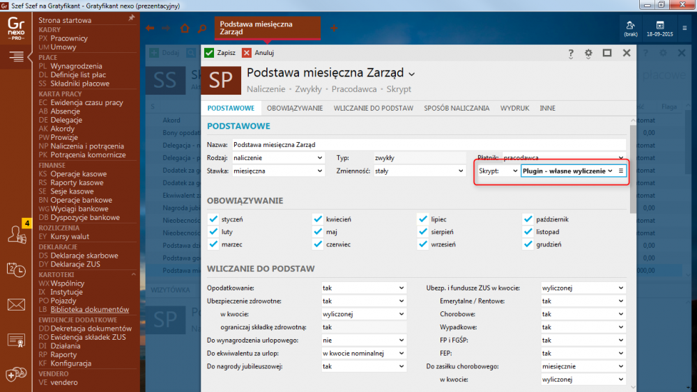 - tzw. punkty rozszerzania – możliwość rozszerzania logiki biznesowej o własne algorytmy (np. własne składniki płacowe, tzw. pluginy);