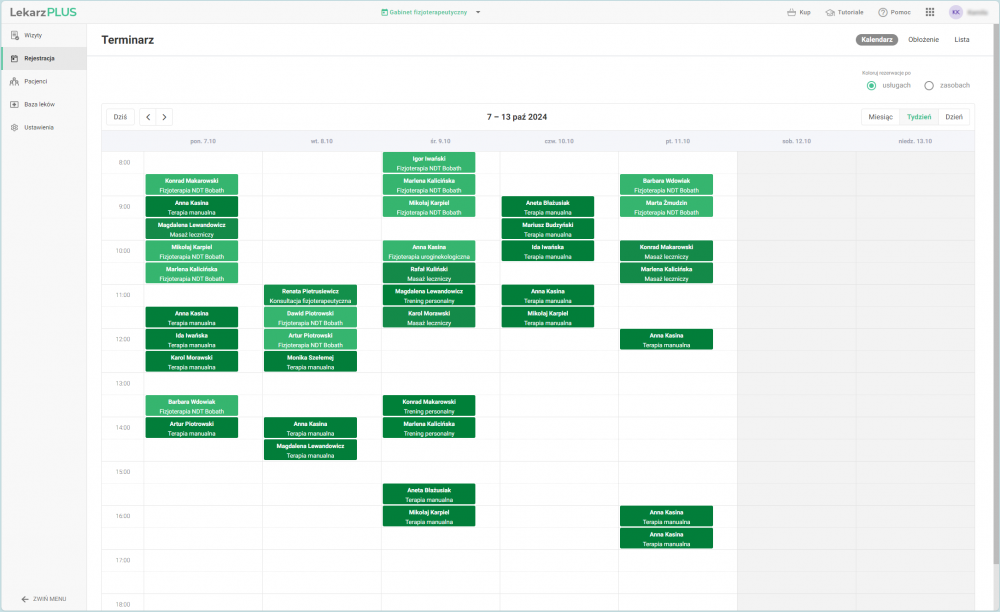 System Lekarz PLUS oferuje wygodny graficzny terminarz, który ułatwia umawianie wizyt. Specjalista ma do wyboru kilka rodzajów widoku kalendarza (m.in. dzienny i tygodniowy), może skorzystać z wyszukiwarki wolnych terminów, określić, w jakim przedziale czasowym dostępna jest rejestracja oraz jej anulowanie, a także zamieścić formularz rejestracji na swojej stronie www. Z tym modułem umawianie wizyt jest proste i intuicyjne.