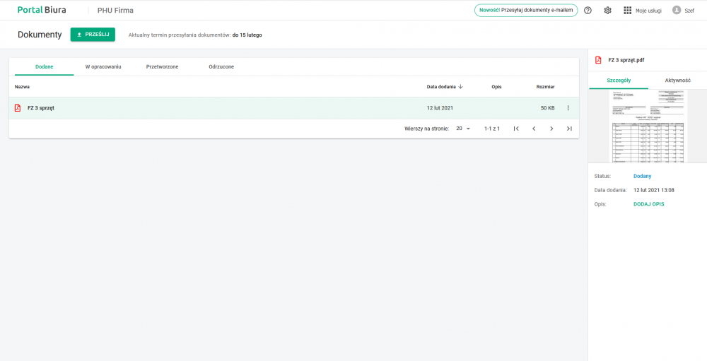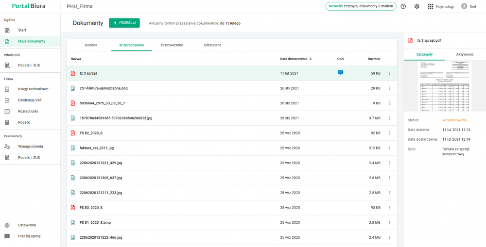 Dzięki usłudze Dokumenty klient biura rachunkowego może: