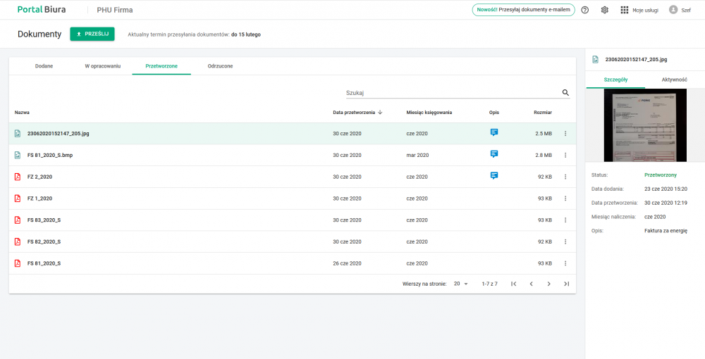 - poprzez chmurę błyskawicznie przesyłać do biura rachunkowego zdjęcia dokumentów (np. zrobione za pomocą smartfona) oraz dokumenty w formacie PDF;