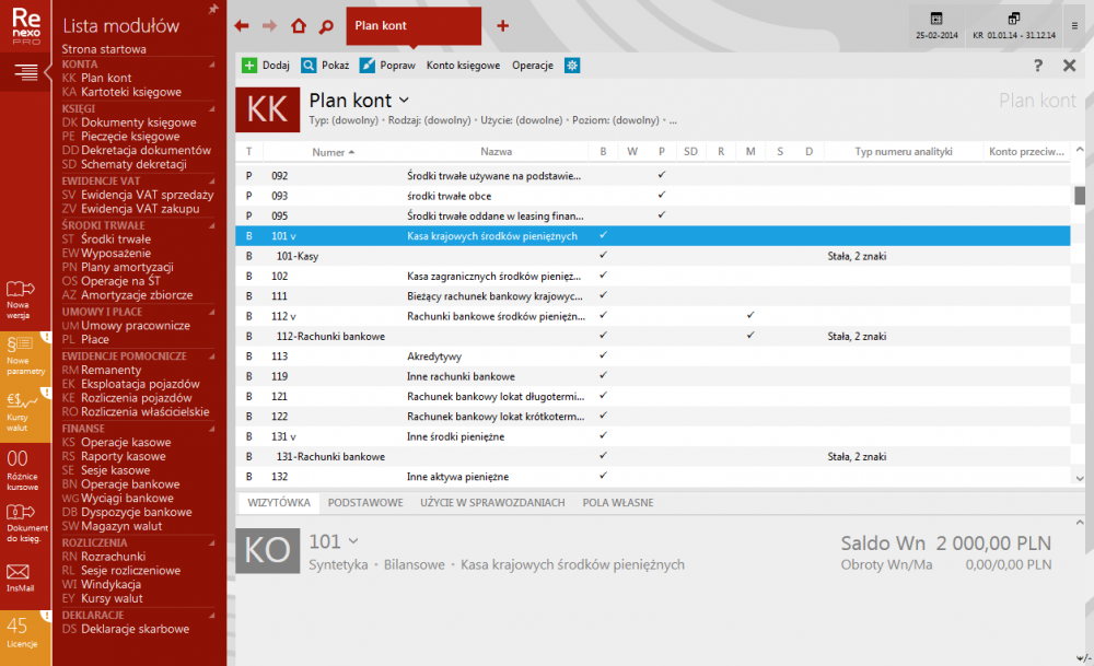 - elastyczne zarządzanie planami kont: możliwość generowania wzorcowego planu kont, przeniesienia z innego okresu obrachunkowego, automatyczne tworzenie kont kartotekowych, obsługa kont pozabilansowych;