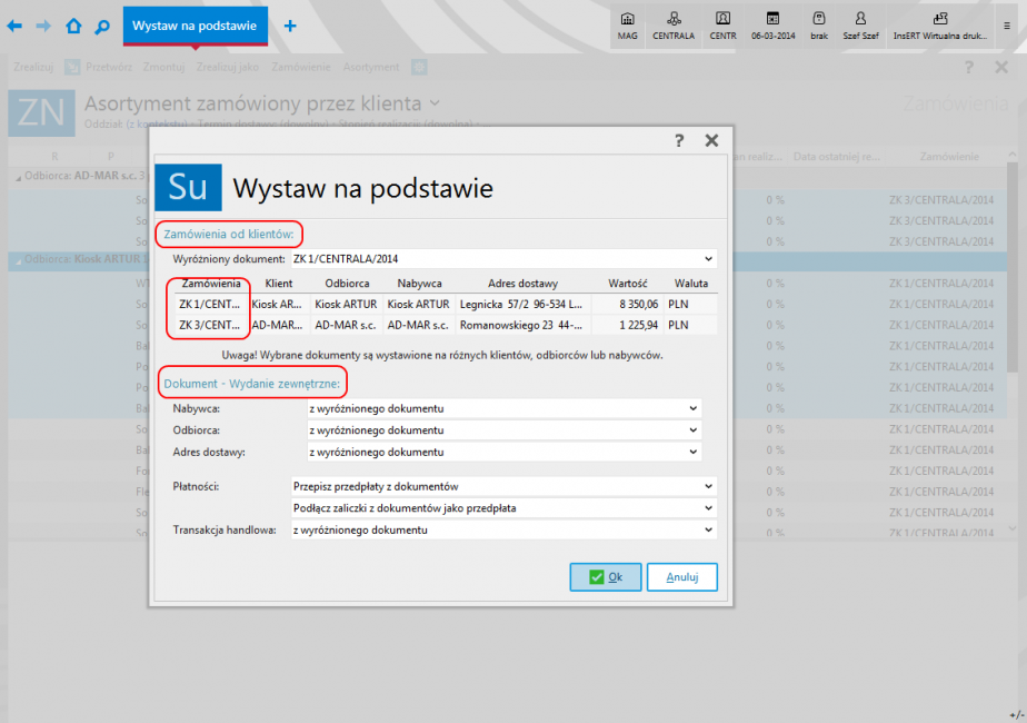 - możliwość zbiorczej realizacji wielu zamówień jednym dokumentem;