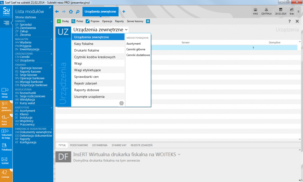 - rozbudowana obsługa urządzeń zewnętrznych (kasy fiskalne, drukarki fiskalne, wagi etykietujące, czytniki kodów kreskowych);