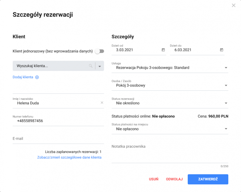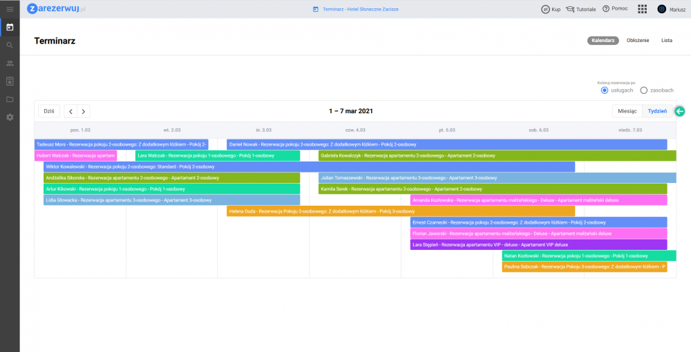- terminarz – łatwy w obsłudze i wielofunkcyjny kalendarz, który ułatwia zarządzanie rezerwacjami;